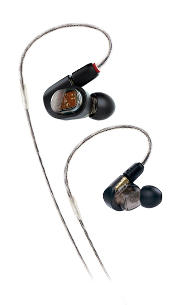Младшая модель ATH-E40 оснащена двумя динамическими драйверами на каждый канал, которые выдают мощный бас и детализированные средние и высокие частоты. В комплект входят силиконовые вкладыши четырех размеров (XS, S, M, L), создающие дополнительную звукоизоляцию.