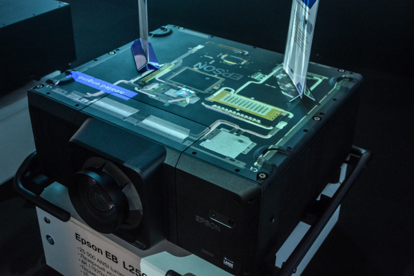 Epson EB-L20000U— легкий и компактный (по сравнению с другими решениями сопоставимой яркости) 20 000 ANSI люмен проектор. Его WUXGA-матрица позволяет воспроизводить новейший HDR-видеоконтент. Что интересно, проектор оснащен встроенная камерой. С ее помощью можно дистанционно проводить диагностику устройства, а также работать с программой Epson Professional Projection Tool (для настройки мультипроекторных инсталляций и выполнению сшивки нескольких изображений и проекционного маппинга).