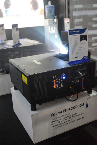 Однако, 20 000 ANSI люмен — это не предел для проекционных решений Epson. В портфолио бренда также есть модель EB-L25000U — ее световая мощь достигает 25 000 ANSI люмен (эта модель также демонстрировалась на Выставке).