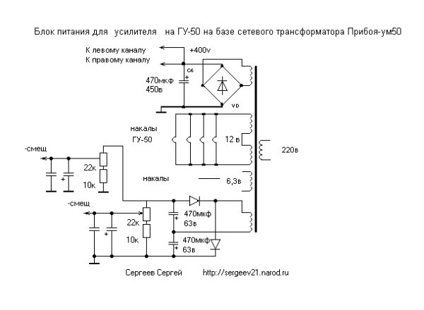 Усилитель собран на лампах 6н1п, 6н6п и ГУ-50 в триодном включении. Вариант тетродного включения мне не понравился из-за заметных искажений, при незначительном повышении мощности.