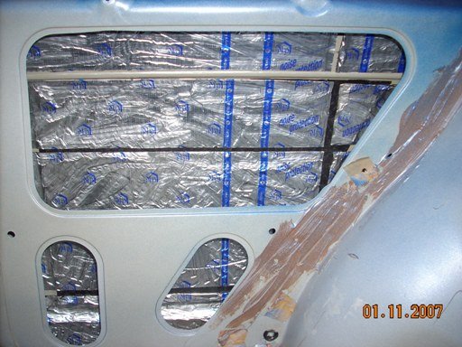 Для начала необходимо кардинально уменьшить уровень шумов и вибраций, для чего кузов автомобиля и все разборные части салона проклеены вибро- и шумоизоляционными материалами.