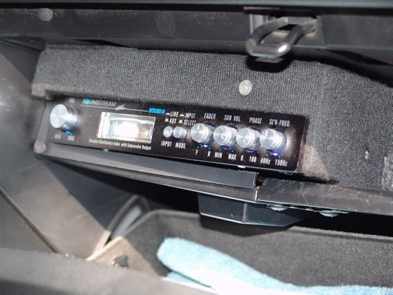 Ламповый предусилитель решили разместить в бардачке на месте пассажира. Так как машина безпроцессорная, трёхполосный фронт решили разместить в одной плоскости, для лучшей центровки сцены. Изготовили подиумы и затянули их итальянским винилом ( AUDIOCOMP VP-200 ). Акустические кабели уложены в гофру и припаяны к динамиками, с помощью специального припоя с 4-х процентным содержанием серебра.