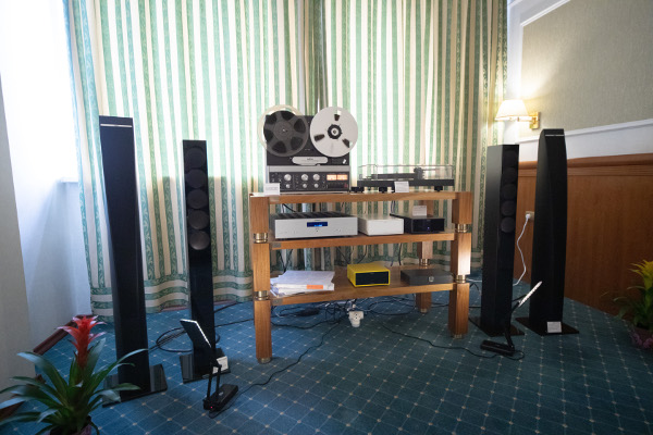Много техники разных производителей было представлено и у Prime Solutions. Особого внимания в комнате заслуживала цифра Merging и новейший проигрыватель винила StudioMaster T700 со встроенным фонокорректором для MC-звукоснимателей. Ну а REVOX радовал полностью восстановленным винтажным катушечным магнитофоном, а также устройствами из линейки мультирумной техники StudioArt.