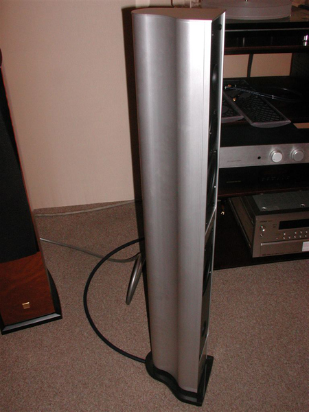 Установленные на гранитные подставки с шипами, «башни» ростом 116 сантиметров и глубиной в 23, легко найдут себе место даже в плотно заставленной комнате. Хотя, должен отметить, что вид акустика имеет красивый, и прятать её от человеческих глаз неразумно. Кстати, акустические кабели к колонкам подключаются снизу, полностью уничтожая проблему торчащих на виду проводов.