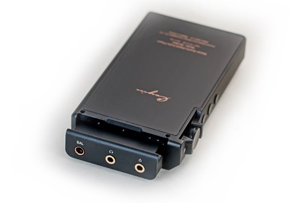 На верхней грани есть три круглых разъема: 4,4 мм балансный выход Pentaconn 4,4 (он же линейный выход, 3,5 мм), несимметричный выход на наушники, а также самостоятельный 3,5 мм линейный выход.