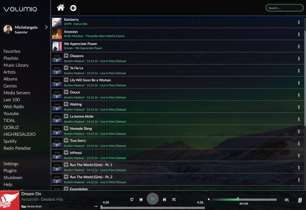 Как уже отмечалось, Volumio изначально создавался не просто как программная аудиоплатформа, а как настоящая операционная система. Ее можно загрузить на SD-карту и установить, например, на микрокомпьютер Raspberry Pi, превратив его в настоящий аудиостример. Аудиосигнал с него можно будет снимать как через USB, так и с шины I2S (во втором случае, разумеется, потребуется специальный ЦАП). Кроме того, существуют версии Volumio и для другого «железа», в том числе и PC. После установки этого ПО, через специальное приложение или просто через веб-интерфейс вы получаете возможности управления своей музыкальной библиотекой с файлами практически во всех существующих аудиоформатах, установки разных плагинов и выполнения других функций. Хотя сама система Volumio является бесплатной, за пользование мобильным приложением, в котором реализованы все ее функции, придется платить (хотя сумма и не столь значительна). С другой стороны, многие меломаны могут предпочесть «бесплатный» веб-интерфейс, который, кстати, очень удобный.