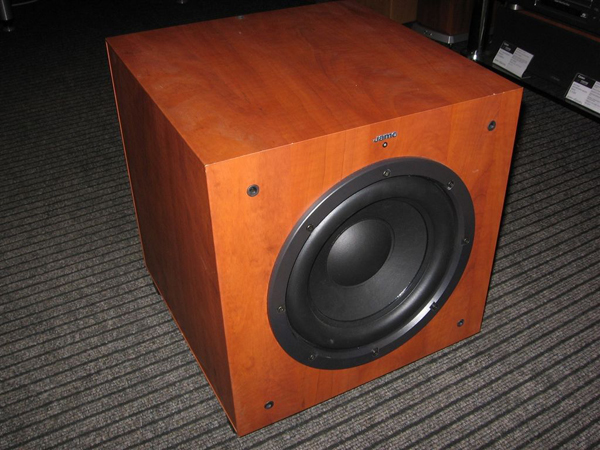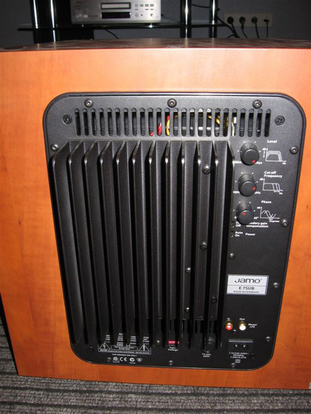 Jamo E 7SUB даже внешне отличается от рассмотренного выше сабвуфера. Выглядит более аристократично из-за качественной отделки деревом. Размеры его составляют 37х37х37 см. Но он занял первое место в нашем тесте по тяжести: Jamo E 7SUB весит 21 кг. Акустическое оформление этой модели – закрытый ящик, то есть имеется возможность поставить эту модель вплотную к стене или в угол. Вариантов отделки корпуса три: чёрный ясень, тёмная яблоня и светлая яблоня. Диаметр динамика равняется 254 мм. Диффузор изготовлен из жёсткой бумаги. Заявленная производителем пиковая мощность усилителя 675 Вт, средняя - предположительно, около 200 Вт . Срез частоты кроссовера можно настроить в пределах от 40 до 150 Гц. Диапазон воспроизводимых частот производитель не указал, но опытным путём был получен результат нижней границы в 35 Гц. Модель также поддерживает автоматическое включение/выключение.