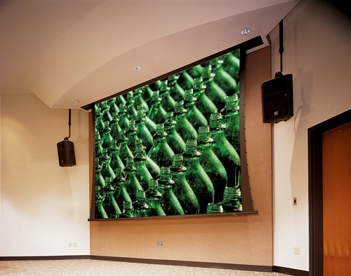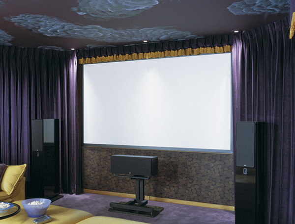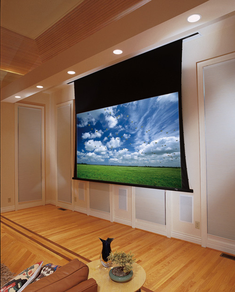 Аccess/Series V. Роскошная серия, решение о применении данного экрана принимается во время проектирования дома, а монтаж осуществляется только с коробом корпуса. По завершению строительства и отделочных работ, в корпус монтируется вал с мотором, экранное полотно и в некоторых случаях автоматические шторки, которые при опускании экрана не выдвигаются наружу, а уходят внутрь. Цена экрана порой может доходить до стоимости дорогого проектора.