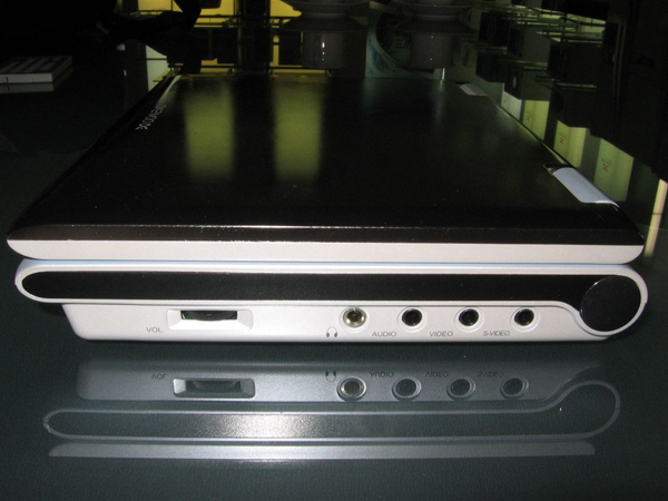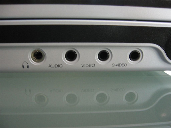 На правой боковине нашли место основные интерфейсные разъёмы и регулятор громкости. Регулятор аналоговый, без изысков, впрочем, ничего другого и не требуется. Как уже упоминалось выше, разъёмы Audio, Video и S-Video в плеере нестандартные, они внешне и конструктивно напоминают джек. Не совсем понятное решение, поскольку и стандартные разъёмы уместились бы сюда вполне, а вот если вы потеряете уникальные переходники или повредите их, то в первом попавшимся магазинчике их не купишь.