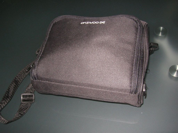 Встречайте, портативный DVD проигрыватель Daewoo DPC 7700 PD с экраном диагональю семь дюймов. Одёжку его фраком, конечно, не назовёшь, но и предназначение у него совсем не королевское, а сумочка идущая в комплекте очень даже практичная. Много кармашков и отсеков, где плотно располагаются аксессуары, не занимая лишних кубических сантиметров. Кроме того, сумочка универсальная, она может быть использована в автомобиле как крепление на подголовник для просмотра кино пассажиром на заднем сидении.