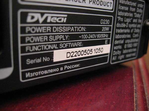 В комплект входит полнофункциональный пульт управления. Несколько удлиненный по форме, черно-серебристого цвета, оснащен, светящимися в темноте кнопками. К проигрывателю и основному пульту, в этот раз, сотрудники DVTech, не посчитали нужным, положить в коробку еще и маленький пульт (напомню, что к многим моделям проигрывателей DVTech прилагаются, как правило два пульта ДУ). Ну, да и ладно, он, как говорится, «погоду не делает». Просто приятное дополнение к основному. Для такого бюджетного устройства возможности чтения проигрывателя D 230 максимальны. Он поддерживает воспроизведение видеофильмов в форматах DVD-Video, SVCD, VCD, MPEG4 (DivX, XviD), аудиозаписей в форматах CDDA, HDCD, MP3, WMA и фотоальбомов JPEG, Kodak. Совместим с большинством стандартов носителей DVD-R/RW, DVD+R/RW и CD-R/RW. В проигрывателе реализованы самые необходимые сервисные функции – масштабирование изображения, ускоренное, замедленное и покадровое воспроизведение, режимы повтора эпизода и функция ввода ограничений на просмотр детьми нежелательных дисков.