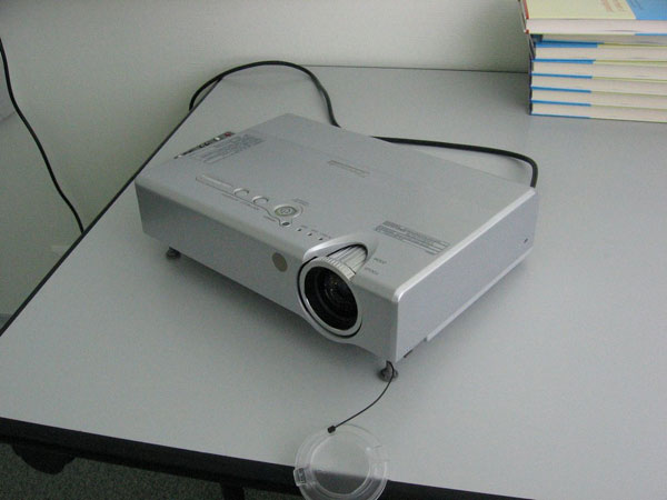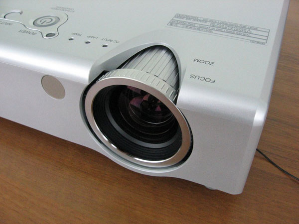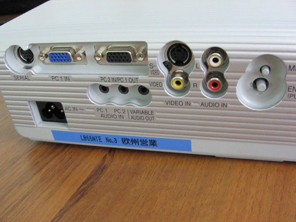 Выглядит Panasonic PT –LB55NTE современно и стильно. Насыщенного серебристого цвета, углы аппарата сглажены, объектив закрывается стильной полупрозрачной крышкой. Широкоугольный вариообъектив позволяет легко сфокусировать изображение и настроить по размерам экрана при проекционном расстоянии от одного с лишним метра до 10. На верхней панели расположены кнопки включения, выбора сигнала, автоматической настройки и индикаторы. Сзади находится панель стандартных входных разъемов: два RGB входа (один из них может использоваться в качестве выхода на монитор) , S-Video, композитный и стерео-звуковой.