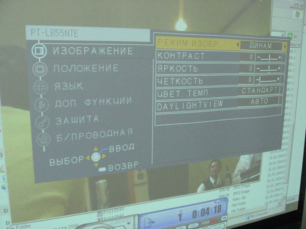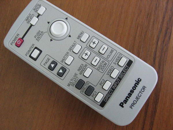 Пульт ДУ – маленький и аккуратный, серебристого цвета с черными и белыми кнопками. На нём присутствует достаточно удобный джойстик, хотя, кажется, ему не хватает жесткости, от чего несколько страдает информативность нажатия. Яркость проектора достаточная - он обладает световым потоком 2500 люменов, но и это не предел, поскольку в ряду Panasonic присутствует почти идентичная модель PT-LB60NTE с яркостью 3200 lm. Фирменная технология Daylight View 2 обеспечивает качественное изображение даже в ярко освещенном помещении: благодаря ей, проектор изменяет уровень яркости и контрастности в зависимости от освещенности помещения, где проходит презентация. Благодаря высокому базовому разрешению (а модель поддерживает HDTV 720р и 1080i), картинка четкая, хорошо различимы даже мелкие детали. Ну а если уж совсем мелкий шрифт, то его рассмотреть поможет цифровое масштабирование фрагментов. Если в комнате, где будет проходить презентация, нет экрана, не беда, нужно только включить режим классной доски. Он также позволяет воспроизводить картинку на обычной черной доске в классе. Управлять проектором легко и просто, в меню есть подсказки. Кроме того, присутствуют такие функции, как защита от несанкционированного использования и автоматический переход в ждущий режим по истечении запрограммированного пользователем времени.