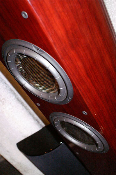 Порт фазоинвертора выведен вниз, в область между корпусом и массивным подиумом в черном лаке, послужившим своеобразным акустическим зеркалом. Сделано это для лучшего воспроизведения басов. Частотные характеристики модели соответствуют уровню акустики и составляют 25Гц – 20 КГц. Нельзя не упомянуть и про возможности подключения tri-wire, что, например, означает возможность подключения трех независимых усилителей для разных частотных диапазонов tri-amp. Вряд ли, эта функция будет широко использоваться, но для бескомпромиссных меломанов поле для деятельности есть. Рекомендуемая мощность усилителя для работы с Mirage OMD-28 - 50-300 Вт. Так что можно быть уверенным, что акустике «по зубам» даже достаточно большие помещения. Номинальное сопротивление АС 6 Ом.