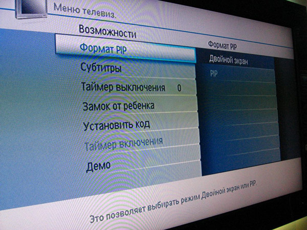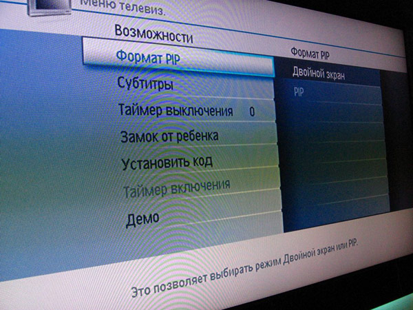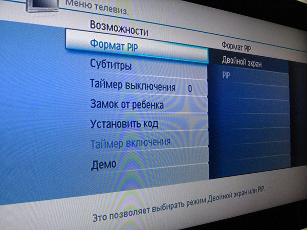 Поскольку в Philips 42PF9831D, есть два тюнера, в наличии функция «картинка в картинке», которая позволяет вести параллельный просмотр двух программ. Присутствуют такие функции, как защита от несанкционированного использования, защита от детей.