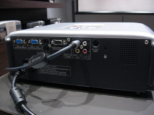 Начнем с внешнего вида Sharp XR-10S. Ведь как гласит русская пословица: «Встречают по одежке….». Изысканный современный дизайн, выполненный в стильных серебристо- черных тонах. Сверху расположены основные кнопки управления. Поскольку оптический блок герметично закрыт, проектор надежно защищен от пыли и сигаретного дыма. Установить аппарат несложно, достаточно только подключить кабель питания и сигнальный кабель. Все это отнимет совсем немного времени. Сзади находятся разъемы: 2 D-Sub (VGA), композитный, S-Video, RCA (тюльпан), RS232(Com), мини-джек 3,5mm.