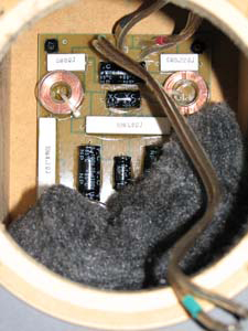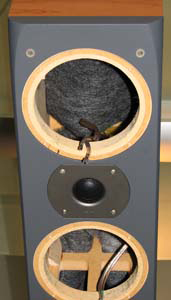 Кроссовер вертикально закреплён на задней стенке примерно на уровне твитера. Фазоинверторы имеют скруглённые стенки с обоих концов.