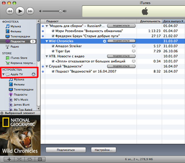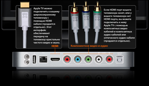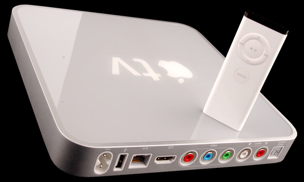 По своему устройству Apple TV не что иное, как медиаплеер, внутри которого скрывается относительно небольшой жесткий диск (на 40 Гб), процессор для обработки сигналов, устройства коммутации и плата выходящих разъемов. И тут возникает вопрос, чем же принципиально отличается Apple TV от других медиаплееров на базе накопителей с жестким диском или DVD-проигрывателей? Главное отличие в том, что ставка сделана не на носители, а на соединения и службу медиаконтента iTunes. Вместо того чтобы заливать кино и музыку с CD и DVD-дисков на «винт» устройства, мы в данном случае используем жесткий диск как устройство для временного хранения файлов, а основная база наших развлечений лежит далеко-далеко на серверах Apple.