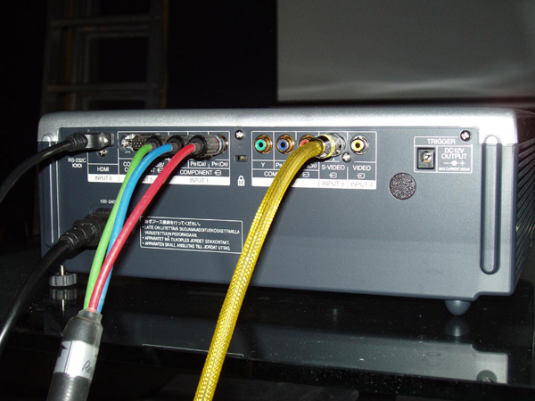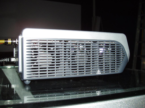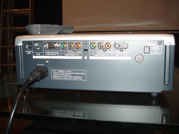 Первое впечатление от аппарата – отличный стильный внешний вид. Взгляните на первую фотографию теста – красавец! На верхней плоскости проектора расположены основные кнопки управления, а по бокам – вентиляция. Сзади, как и полагается, расположены разъёмы: два компонентных, композитный, S-Video, аналоговый RGB-вход и цифровой HDMI (HDCP). Также на задней панели находятся разъём RS-232 для управления проектором с компьютера и триггерный выход для управления шторами и моторизованным экраном. С помощью кнопок управления на корпусе можно в процессе работы с устройством без проблем переключаться между различными источниками видеосигнала.