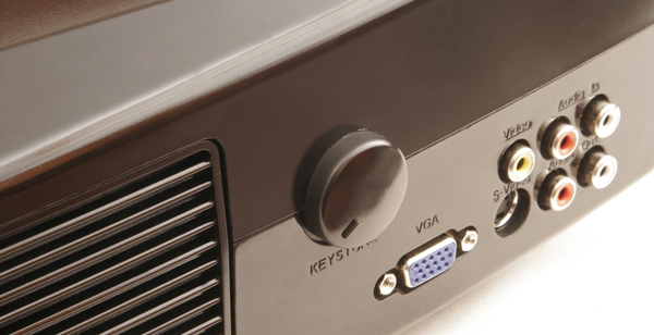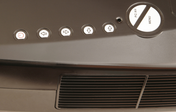 Площадка коннектов имеет в наличии один компьютерный D-Sub, один S-Video-разъем, композит и две пары входящих-исходящих стерео-2RCA. Сами динамики акустики проектора скрываются за решетками охлаждения.