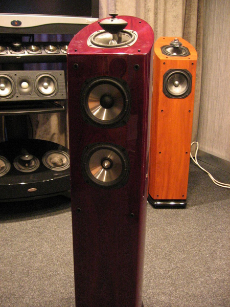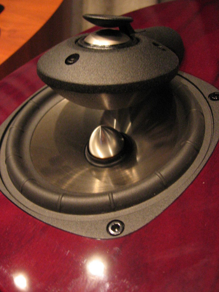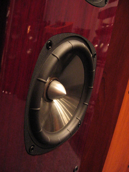 Mirage OMD-15 имеет два варианта отделки – черный лак или шпон красного дерева. Немного жаль, что нет возможности заказать отделку кленом, известную по старшей модели. Колонки, отделанные светлым сучковатым кленом, смотрелись бы очень выигрышно. Впрочем, красное дерево, что было у нас на тесте – самый солидный и серьезный вариант. При первом же взгляде понимаешь, что место этим колонкам в дорогих апартаментах.