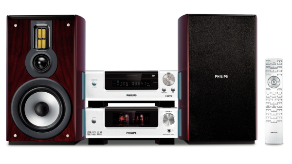 Для воспроизведения звуковых спецэффектов в фильме ламповая аппаратура не является лучшим вариантом, и Philips MCD908/12 тут не является исключением. Всевозможные взрывы, выстрелы и т.п. звучат на ней недостаточно убедительно. Учитывая также отсутствие в минисистеме декодера пространственного звучания, то, скорее всего, придется задействовать внешний AV-ресивер, подключенный к цифровому оптическому выходу. Однако, нужно иметь в виду, что есть пользователи, которым ламповый звук субъективно нравится даже применительно к звуковому сопровождению фильмов. И для них Philips MCD908/12 оказывается настоящей находкой, поскольку ламповая аппаратура для домашнего кинотеатра стоит запредельно дорого.Пульт дистанционного управления, прилагаемый к министеме, имеет плоские кнопки, напоминающие клавиши известного телефона Motorola Razr. Но если в телефоне такие кнопки еще уместны, то, применительно к пульту они создают определенные неудобства. Когда кнопки выпуклые, можно работать с пультом наощупь, смотря при этом на индикатор минисистемы или на экран телевизора. А в этом пульте все время приходится смотреть, какую кнопку ты нажимаешь. Кроме этого, дизайн пульта совсем не сочетается с дизайном акустических систем, выполненным в стиле «ретро». Однако, эту проблему можно решить, купив универсальный пульт ДУ от Philips с обычными кнопками.