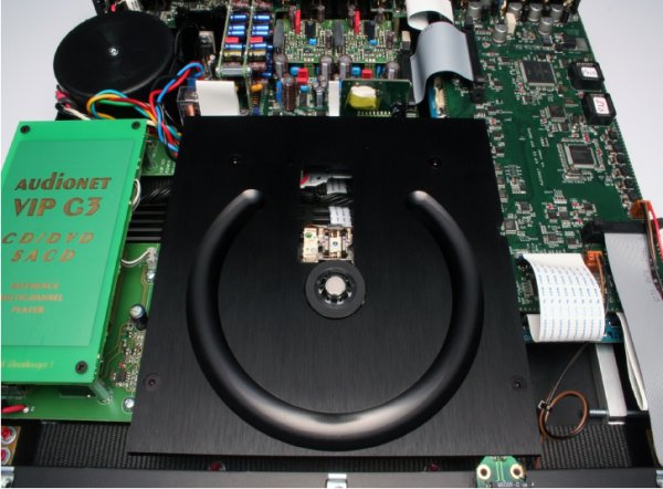 Транспортная часть закреплена на прочной алюминиевой пластине и фактически отделена от корпуса при помощи технологии Audionet Aligned Resonance, которая позволяет систематически поглощать лишние импульсы. Корпус не пропускает вибраций и шума. Система вентиляции, использованная в VIP G3, позволяет обходиться без кулеров. Адаптивный стабилизатор сделанный из материала, напоминающего тефлон, прочно фиксирует диски в надлежащем положении, а также устраняет все проблемы, которые могут возникнуть при проигрывании диска.