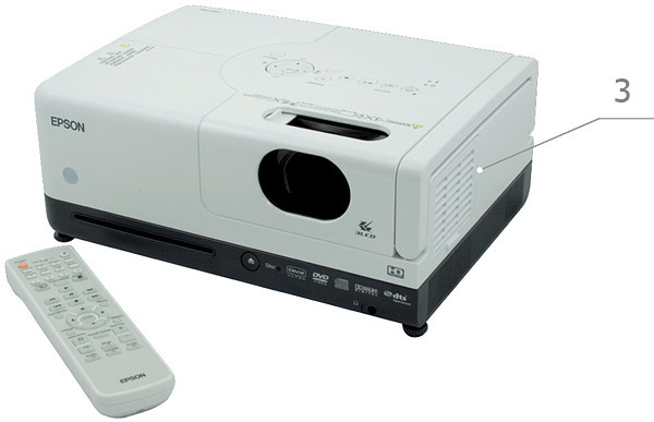 3 - Проектор оборудован встроенными стереоколонками, а наличие декодеров DTS Digital Surrround, Dolby Virtual Speaker и Virtual Surrround обеспечивает воспроизведение саундтреков к фильмам.