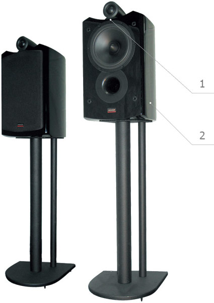 Питер предложил свой рецепт "бескомпромиссного качества": жесткий, обтекаемый, сложной геометрии антирезонансный корпус (с фазоинвентором на передней панели), НЧ-динамик с большим линейным ходом и полипропиленовым диффузором со слюдяным наполнителем, а также вынесенный в отдельный блок твитер (на базе шелковой тканой мембраны).