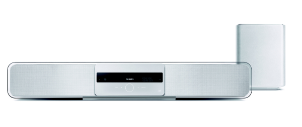 Во-первых, дизайн. Модель создавалась с таким расчетом, чтобы гармонировать по стилю с новыми (весьма оригинальными) HD-телевизорами Philips. Устройство выглядит грациозно и самобытно, не вызывая ассоциации с похожими решениями других брендов. Пульт дистанционного управления и сабвуфер обладают той же «глянцевой» харизмой, что и звуковая панель. Радует внимание Philips к мелочам. Продумано все: от профиля корпуса, до каждой кнопки на пульте ДУ. Интересный нюанс — сенсорные клавиши на «шторке» DVD-проигрывателя. Все это делает общение пользователя с устройством приятным и естественным.