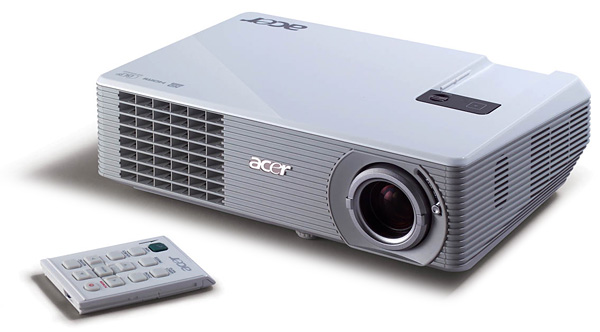 В комплект, помимо всевозможных кабелей входит удобная и довольно элегантная сумка для переноски проектора. Девайс оборудован объективом, который позволяет развернуть картинку с диагональю в 172 см с проекционного расстояния в три метра. Оптический зум имеется, правда не такой значительный, как бы того хотелось. Наконец, на тыльной стороне модели расположены различные видео-входы, USB-терминал и аудиовход (у проектора имеется свой динамик). Здесь и HDMI и компьютерный (VGA) и другие традиционные видеоразъемы. Да, компания Acer хорошо позаботилась о том, чтобы проектор можно было без проблем подключить к любому источнику видеосигнала, будь то HD-медиаплеер, компьютер или видеокамера. При включении слышен гул вентилятора. Впрочем, по уровню шума модель не выходит за рамки приличия.