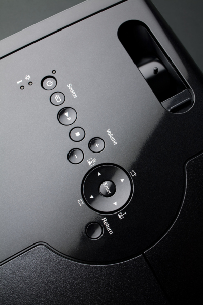 Встроенные акустические системы хорошо отрабатывают средние и высокие частоты. Однако, самых глубоких басов все-таки не хватает. И это вполне объяснимо – динамики небольшие, встроенные в корпус проектора. К сожалению, отдельного выхода на сабвуфер не предусмотрено. Есть только цифровой коаксиальный аудиовыход, к которому можно подключить ресивер, а уже к нему – комплект акустики, в том числе и сабвуфер. Предусмотрен выход на наушники, правда, расположен он довольно неудобно – на той же стороне, где и объектив.