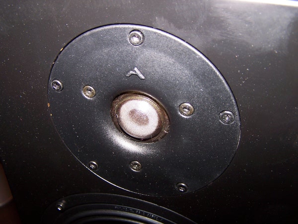 Но когда мы начинаем знакомиться с твитером, то обнаруживаем, что его конструкция имеет некоторые особенности. Внешне кажется, что купольный излучатель твитера сделан из пластмассы. Однако, если внимательно приглядеться, то видно, что на самом деле это шелковая ткань с большими расстояниями между нитями, пропитанная пластиком. Кстати, на ощупь этот пластик эластичный, возможно, что мы имеем дело с силиконом. Именно эта особенность, как показало тестирование, и обеспечило превосходное звучание колонок.