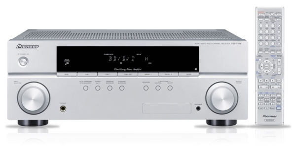 Pioneer VSX-519V. Солидность фирмы определила и солидность бюджетного аппарата. Выглядит на все сто! Звук также оправдывает ожидания. Аудиопанорама четкая, детализованная и тщательно сбалансирована. Великолепная функция автонастройки и фазового контроля позволяют ресиверу раскрыться в любом помещении. А если вы владелец iPod, то аппарат предоставляет возможность управления им. Шикарный звук от мобильного плеера гарантирован. А цена ресивера вообще порадует.
