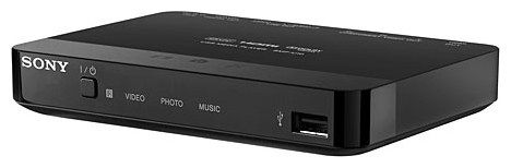 Третьим представителем бюджетных плееров выступает медиаплеер ONEXT Multimedia BOX M-Box 1. Этот аппарат уже оснащен цифровым выходом HDMI, а также композитным видео и обычным стереоразъемами. Однако наличие HDMI не говорит о возможности вывода HD видео, а служит лишь для удобного соединения с современными телевизорами. Поддерживаемые кодеки и видеоформаты - AVI, VOB, DAT, MPG, MPEG1, MPEG2, MPEG4, DivX. Аудио - MP3, WMA, AC3, фото - JPEG, GIF, BMP, TIFF. Поддержка локальной сети также отсутствует, контент может воспроизводиться с внешних флеш и HDD накопителей через USB-разъем. Кроме того, ONEXT имеет на борту слот для карт памяти SD. Конечно, имеется пульт ДУ, используется пассивное охлаждение и обеспечивается низкое энергопотребление. Плеер неплох, хорошо воспроизводит поддерживаемые форматы, но наличие HDMI подспудно вызывает желание обладать большими возможностями по воспроизведению HD видео. Цена устройства чуть более 1900 рублей.