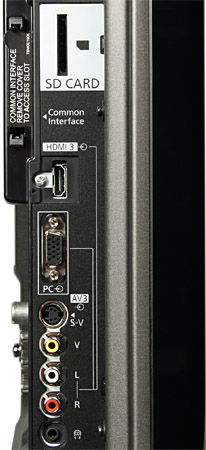 TX-P42S10 имеет типичный для HDTV набор интерфейсов. Есть три разъемы HDMI, один из них сбоку и два на задней панели. Имеется два SCART разъема и компонентный видеовход, стерео аудио разъемы типа RCA. На боковой панели можно найти слот под карту типа SD, VGA вход для подключения компьютера и обычные RCA разъемы композитного входа для воспроизведения видео стандартного разрешения с видеокамеры и вход S-видео. Для любителей посидеть за телевизором допоздна предусмотрен разъем для подключения наушников.