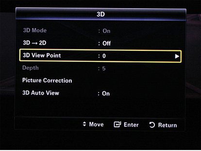 Samsung предлагает несколько настроек и для изначального 3D контента, и для конвертированного из 2D. С первым можно экспериментировать по настройке перспективы, а во втором есть возможность настройки глубины, что по сути подобно первой настройке. Также стоит отметить, что при переключении в режим 3D появляется отдельный набор настроек изображения, при этом удаляются некоторые возможности, доступные для стандартного двухмерного режима (настройки энергопотребления, регулировка формата изображения, опция вставки черного кадра и т.д.).