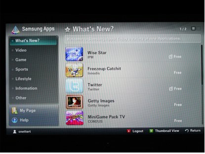 Samsung хочет представить свою платформу Apps, как аналог подобной платформы компании Apple. И хотя телевизионной версии от Samsung пока очень далеко до версии iPhone, она все же предлагает впечатляющий выбор вариантов. Сейчас акцент делается на игры и информационные виджеты (погода, спорт), но нет таких популярных приложений, как Facebook, представленный на платформе Vizio. С другой стороны, мы ожидаем от Samsung в течение этого года появления обновлений, а в июле 2010 года компания планирует серьезную модернизацию Apps.