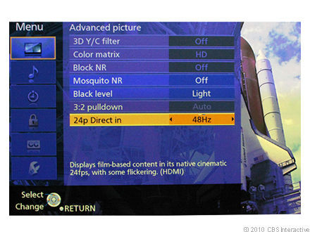 Panasonic, также как сегодня и многие производители, оснастил серии TC-PG20/25 массой настроек изображения. Доступные только в пользовательском режиме настройки «Pro Settings» предоставляют превосходное меню цветовой температуры (правда всего лишь с четырьмя точками, но это лучше чем ничего) и большой выбор настроек гаммы. Нам понравилось, что отличие от подобных телевизоров LG, у Panasonic режим THX настраиваемый. Необходимо также отметить новую настройку снижения размытия, которая улучшает качество в динамических сценах, а дополнительные кадры снижают размытие. Более подробно в разделе "Характеристики".