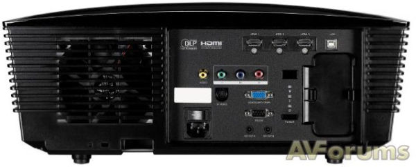 Входные и выходные разъемы сосредоточены на задней панели проектора. Есть три входа HDMI, комплект компонентных разъемов, композитный и S-видео входы. Кроме того есть вход VGA для подключения компьютера и два 12 вольтовых выхода управления внешними компонентами видеосистемы. Имеется на задней панели и порт USB, который я не сразу заметил.