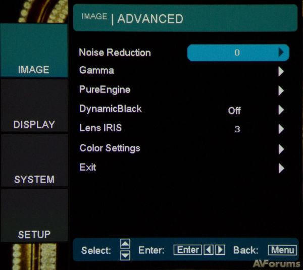 Рассматривая возможности настройки HD87, отметим, что проектор разработан для использования с постоянным размером изображения по высоте экрана. Это означает, что его можно использовать на экране обычного формата для просмотра Blu-ray дисков формата 2,40:1, при этом не будет черных полос сверху и снизу изображения. В этом случае можно дополнительно купить настраиваемый анаморфотный объектив BX-AL133, который имеет планшайбу для крепления в проекторе, и систему перемещения линзы между положением для широкоэкранного формата 2,40:1 и для стандартного киноформата 1,85:1. Система перемещения управляется с 12 В выхода на задней панели проектора и позволяет автоматически настраивать линзу при смене формата изображения, а второй выход на задней панели может управлять экраном, если в вашей системе есть такая опция.