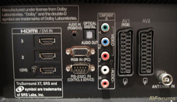 47LD950 имеет стандартный набор интерфейсов. На задней панели есть три входа HDMI, а также разъем для подключения антенны эфирного ТВ, два разъема типа SCART, компонентный вход видео с поддержкой двух разъемов RCA для звукового стерео сопровождения, вход VGA для подключения компьютера, цифровой оптический выход, интерфейс RS232 и аудио вход. Все разъемы сзади имеют горизонтальную ориентацию, что затрудняет настенный монтаж телевизора и укладку кабелей.