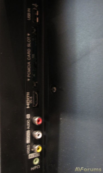 На боковой панели есть стандартный слот типа Common Interface для карт расширения, дополнительный вход HDMI, разъем для наушников, порт USB и композитный видео вход со стерео аудио разъемами типа RCA.