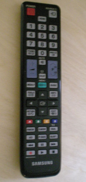 Продаваемый вместе с телевизором пульт дистанционного управления выполнен в корпусе из черного матового пластика, отличается хорошо продуманным расположением кнопок для наиболее часто используемых функций, они легко доступны при манипуляциях с пультом одной рукой. В целом, я не испытал с ним никаких проблем.