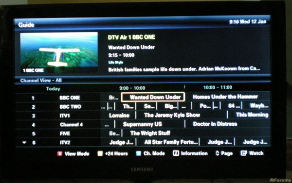 Один экран EPG вмещает шесть каналов с горизонтальной прокруткой остальных. Программа телепередач вмещает лишь двухчасовой период. Хотелось бы иметь и на более длительный время, но все же это не столь серьезная проблема. На экране EPG в левом верхнем углу представлено окно с текущим просматриваемым каналом. В общем, это удобный и привлекательный программный телегид.