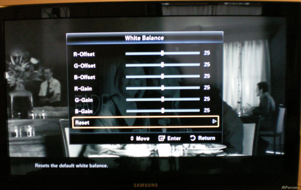 Из меню изображения есть доступ к разделу настроек, содержащему опции для режима и размера экрана (Screen Mode, Screen Size), а также для цифрового шумоподавителя и подавителя шумов MPEG обработки, который может улучшить SD изображение плохого качества. Цветовой тон (Colour Tone) лучше оставить в значении Warm2, которое представляет оптимальные оттенки шкалы серого. Настройка режима фильма – «Film Mode» видимо оказывает небольшое влияние на возможности определения кадрового формата пленочных фильмов, но об этом чуть позже.