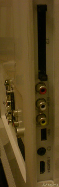 На задней панели LC32LE320E есть два входа HDMI, а также видеовход для подключения компьютера с соответствующим аудиовходом. Далее идут компонентный видеовход, стерео аудио вход и выход, а также цифровой выход типа SPDIF. Наконец, сзади находятся гнездо для подключения антенны, но заметьте здесь нет тюнера DVB-T, поддерживаются телепрограммы только в традиционном SD разрешении.