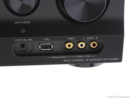 Как и многие другие ресиверы, STR-DN1020 позволяет подключать iPod или iPhone непосредственно к входу USB. STR-DN1020 уникален тем, что он имеет еще и док-станцию для iPod, хотя и не понятно, почему Sony считает это необходимостью, когда iPod или iPhone можно подключить непосредственно через USB.