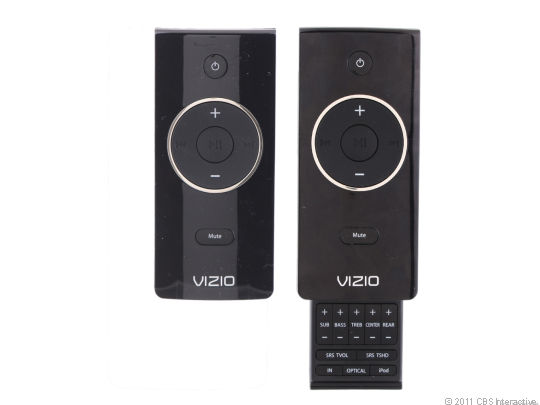 Это удобный для обычного пользователя пульт управления (и даже более продвинутые пользователи будут довольны им, за счет расширения возможностей при выдвижении дополнительной панели управления. Вы можете переключать входы и выполнять все виды корректировки звука при прослушивании. Нам особенно понравилась возможность управления уровнем громкости сабвуфера. Многие пульты имеют выдвижную панель, но Vizio сделал ее особенно хорошо. Это очень удобный ПДУ, если не учитывать возможность использования универсальных пультов.