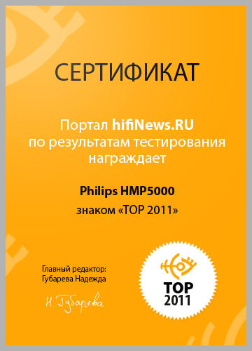 По результатам тестирования портал hifiNews.RU награждает Philips HMP5000 знаком "TOP 2011".